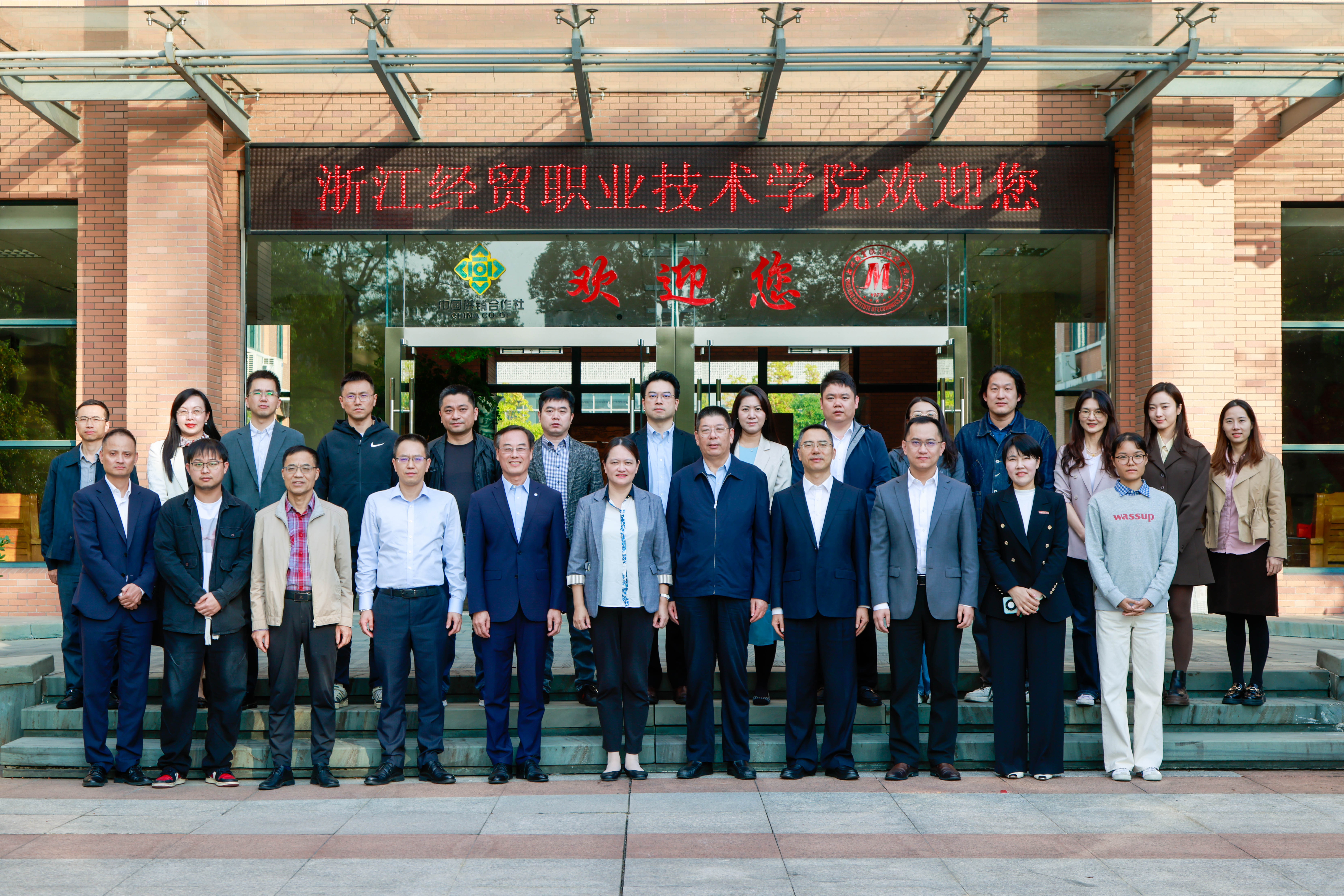 On October 28, the signing and launch ceremony for the BRICS Craftsmen Academy, jointly established by Zhejiang Institute of Economics and Trade (ZJIET) and the Hangzhou Qiantang District Center for Contemporary International Studies, was successfully held at the institute. The event was attended by Li Jun, Deputy Director of the Qiantang New Area Management Committee and Member of the Qiantang District Government, and Chen Dequan, President of ZJIET, both of whom delivered speeches. Representatives from the Qiantang District Human Resources and Social Security Bureau, Commerce Bureau, District Committee Propaganda Department, leaders and experts from the Hangzhou Qiantang District Center for Contemporary International Studies, representatives from enterprises engaged in global expansion, as well as department heads, faculty, and students of ZJIET participated in the ceremony.