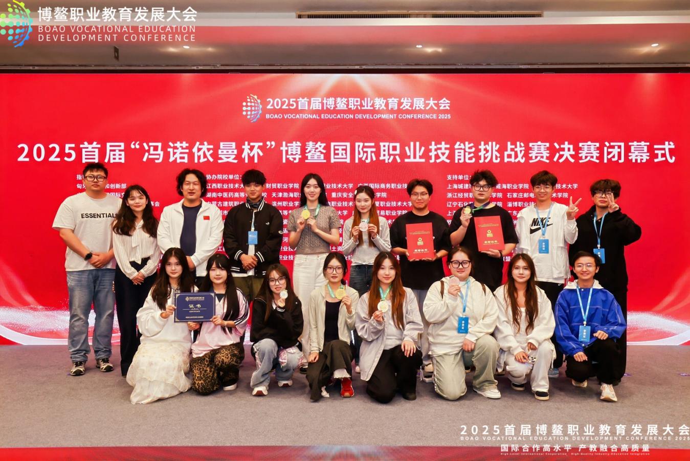 From December 7th to 8th, the International Humanities Exchange track of the 2025 inaugural "Von Neumann Cup" Boao International Vocational Skills Challenge was successfully held at the Boao Forum for Asia International Conference Center in Hainan. Five teams from our institute (Zhejiang Institute of Economics and Trade, ZJIET) strived with determination and achieved remarkable success, securing one gold medal in the Intangible Cultural Heritage Performance Challenge, one gold and two bronze medals in the Intangible Cultural Heritage Exhibition (Works Category) Challenge, and one gold medal in the International Cultural and Creative Products Challenge. The institute was also awarded the "Best Organization Award," fully demonstrating the professional prowess of ZJIET students on an international stage .