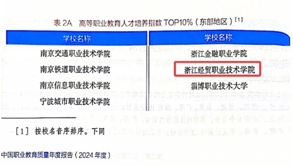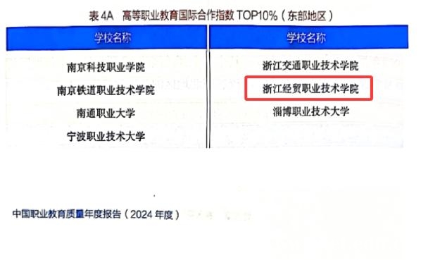 Recently, the "China Vocational Education Quality Annual Report (2024)," compiled and published by the Chinese Academy of Educational Sciences, was released. The report summarizes the innovative achievements in China’s vocational education reform and development during 2024. It selects the top 10% of higher vocational institutions in eastern, central, western, and northeastern regions based on four dimensions: talent cultivation, service contribution, international cooperation, and industry-education integration. Our Institute successfully ranked among the TOP 10% in the "Talent Cultivation" and "International Cooperation" indices for the eastern region, demonstrating its contributions to cultivating high-skilled talents and serving international production-capacity cooperation .