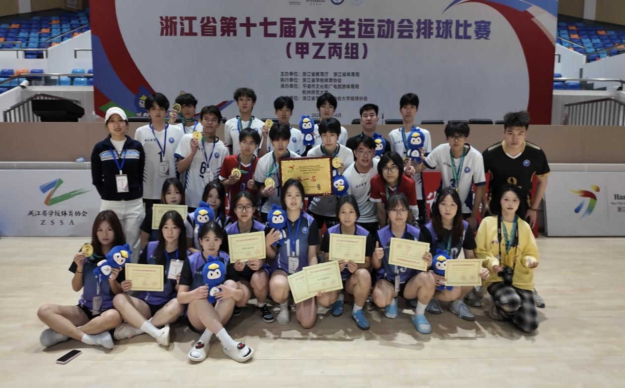 On April 4, the volleyball competition (Group B & C) of the 17th Zhejiang Provincial University Games successfully concluded. As the first event of this provincial games, it brought together over 500 athletes from 27 universities across the province. The men's volleyball team of our institute fought their way through the tournament, claiming the championship with an undefeated record and achieving a groundbreaking "zero gold medal breakthrough"for our institute in this event. The women's volleyball team also strived with determination, securing sixth place in the competition.